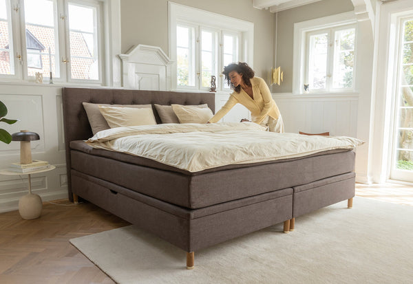 Alva er en luksus kontinentalseng med indbygget opbevaring. Her har vi skabt en seng med den gode komfort fra kontinentalsengen og samtidig lavet plads til masser af opbevaring. Godt håndværk, æstetik, komfort og praktik er nøgleordene for denne seng. Alva er bygget af nøje udvalgte materialer og indeholder syv komfortzoner. Alt hvad der skal til for at få en fantastisk nattesøvn.