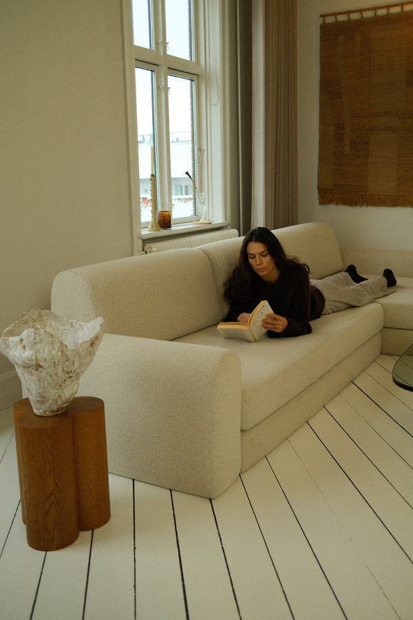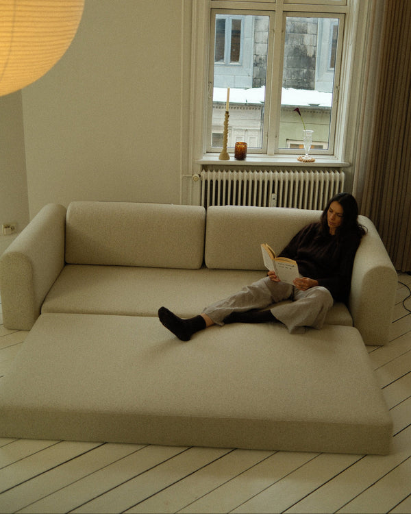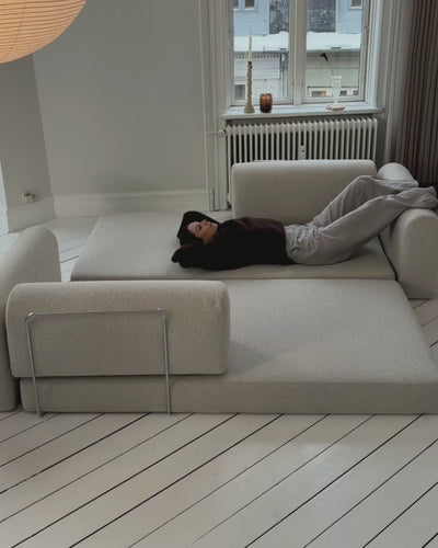 Astra ligner måske bare en smuk, rolig og enkel sofa ved første øjekast. Bløde, afrundede former. Den slags sofa, der får stuen til at føles mere varm og indbydende. Men Astra har en hemmelighed: alt kan flyttes. Ryglæn, armlæn og madrasser er løse moduler, så du kan bygge den om på få minutter – til filmhygge, legeområde eller en ekstra soveplads. Du kan bygge den om, præcis som du har brug for, igen og igen.