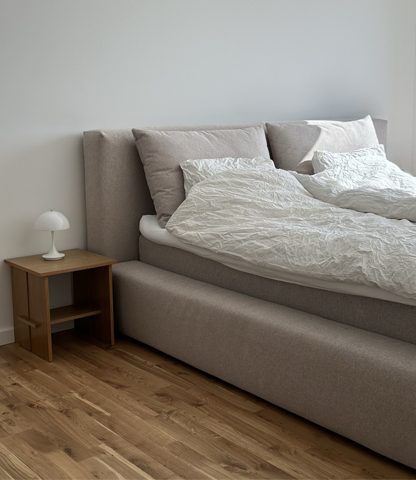 Nova sengerammen er skabt med en vision om at bringe følelsen af ro ind i dit soveværelse. Inspireret af minimalistisk design, fokuserer Nova på rene linjer og enkelhed i alle sine former. Det resulterer i et roligt og harmonisk udtryk, der er både tidløs og moderne. Vi har designet den med fokus på både funktionalitet og æstetik, hvor det integrerede opbevaringsrum effektivt udnytter pladsen under sengen. Sengerammen er bygget af de absolut bedste materialer, med det klare mål at skabe en uovertruffen liggekomfort.