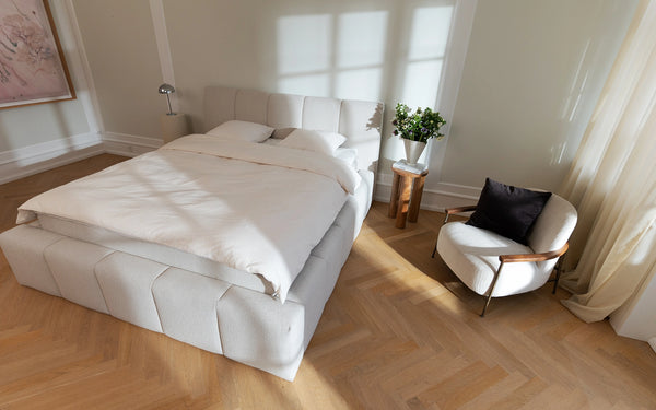 Nordic Dream er dybt forbundet med den smukke, nordiske natur. Vi vælger omhyggeligt de bedste, naturlige materialer, når vi skabe og udvikle kvalitetssenge med respekt for vores skandinaviske designarv.